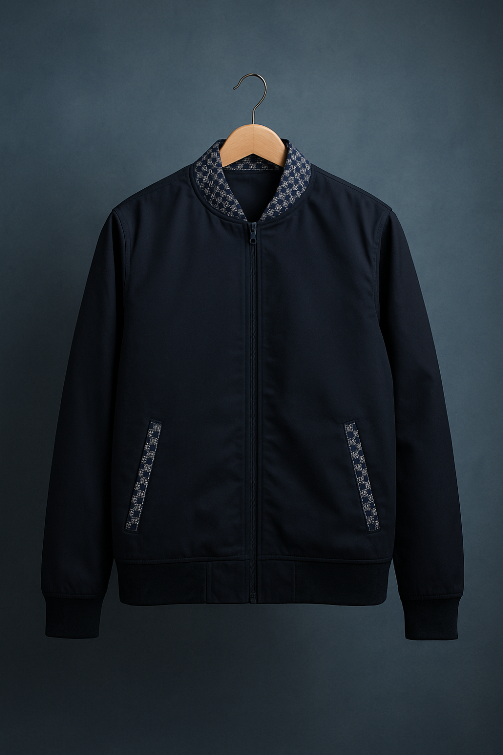 Épurée et structurée, la Jacket Dakar Bleu incarne l’élégance urbaine selon Souley.
